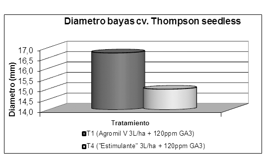Efecto de las aplicaciones de Agrocimax®V AdStrong sobre el diámetro de bayas en uva de mesa variedad Thompson.