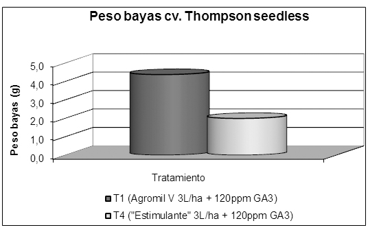 Efecto de las aplicaciones de Agrocimax®V AdStrong sobre el peso de bayas de uva de mesa variedad Thompson seedless.
